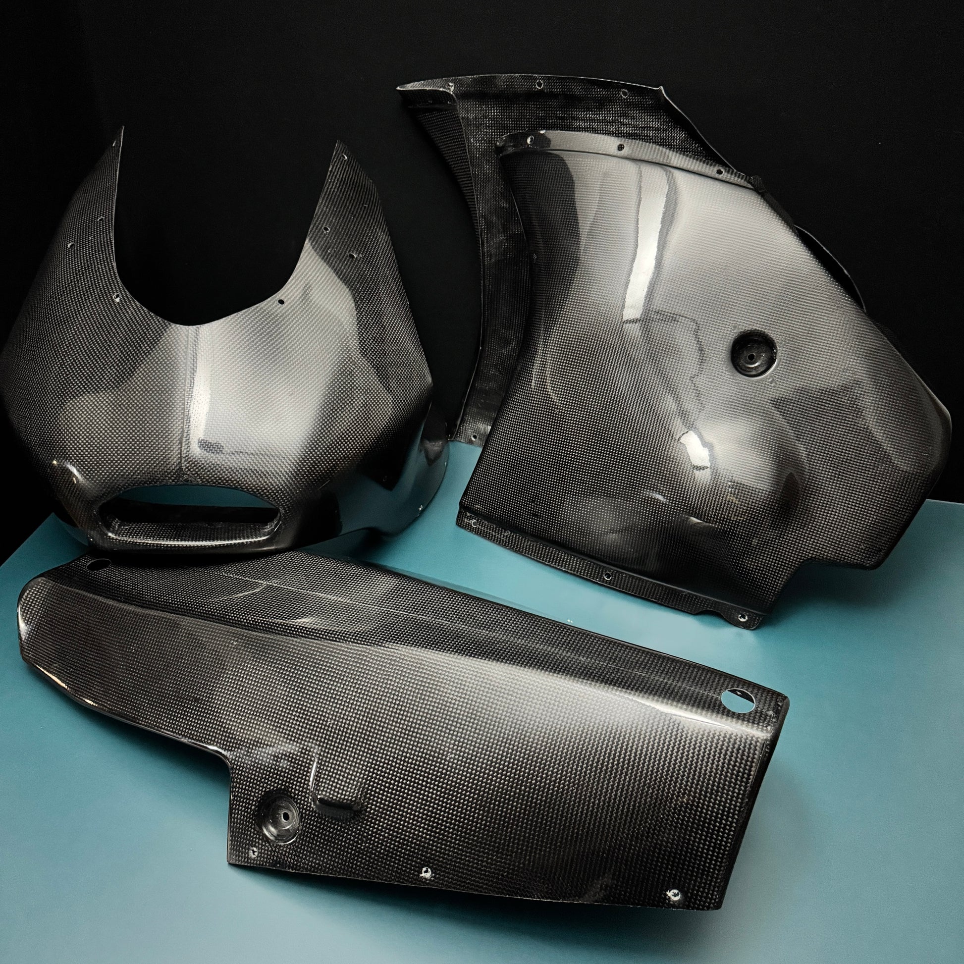 Nuestras piezas de carbono se fabrican mediante un proceso de laminado manual y están diseñadas para su uso en el ámbito del alto rendimiento y la competición. Este proceso garantiza un acabado sólido, componentes funcionales y un aspecto de carbono auténtico.